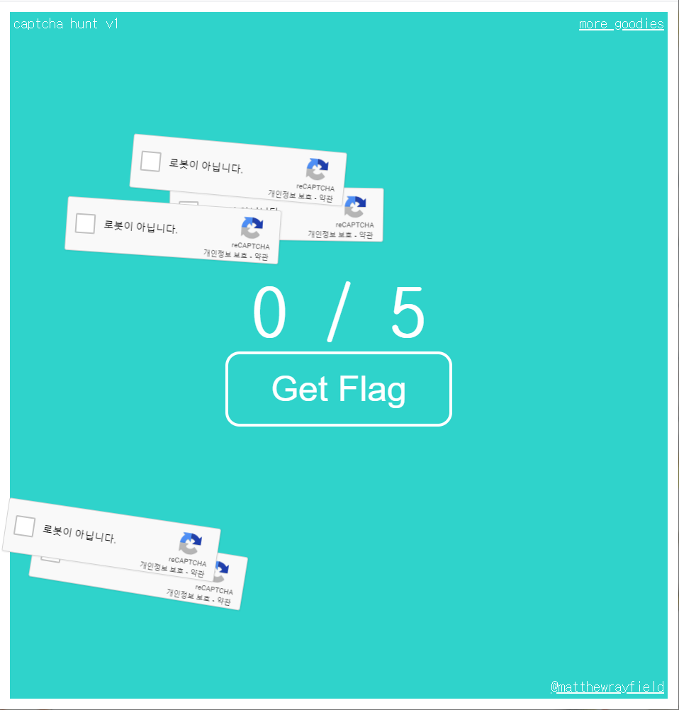 5개의 캡차들이 화면 전체를 쉬지 않고 돌아다닌다. 일정시간이 지난다면 캡챠가 만료되기도 한다.