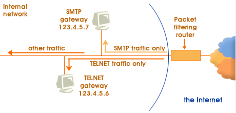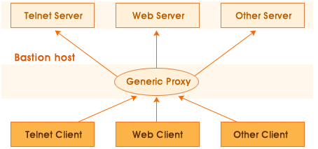 서킷 게이트웨이(Circult Gateway) 방화벽을 통해서 내부 시스템으로 접속하기 위해서는 사용자측 PC에 수정된 클라이언트 프로그램이 필요하다. (클라이언트 프로그램은 방화벽에 위치한 대표 프록시와 통신하는 역활을 우선적으로 수행한다.)