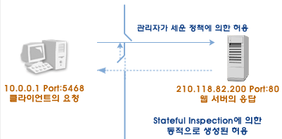 이 방화벽은 서비스에 대한 접근 규칙을 생성할때 되돌아 나가는 flow에 대한 접근규칙은 설정하지 않아도 된다.