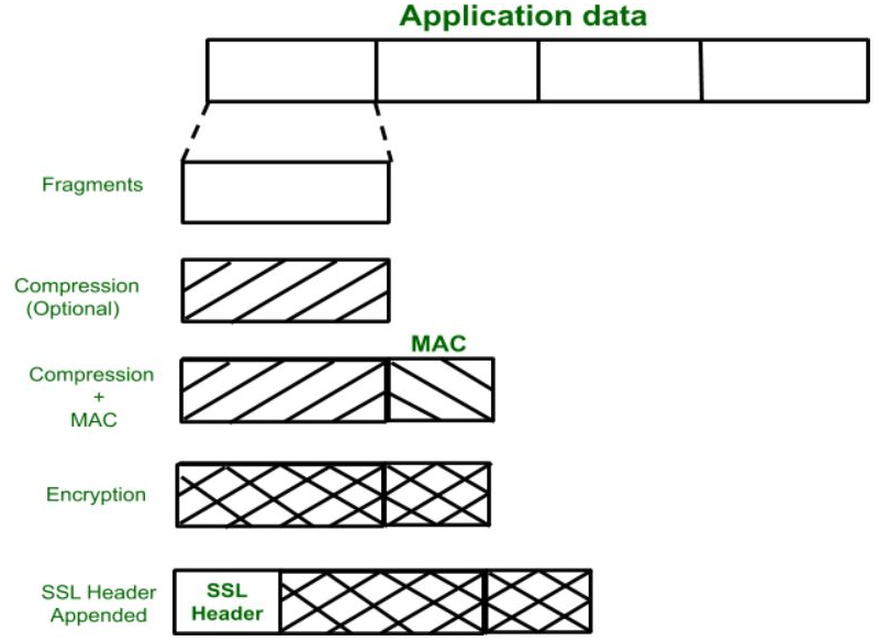 Append header : SSL Header가 암호화된 블록에 추가되며 Header에는 각종 필드가 포함되어 있습니다.