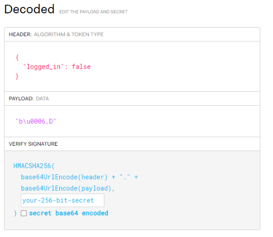 복호화 결과 "logged_in": false 값을 보고 jwt라는 확신이 들었습니다.
