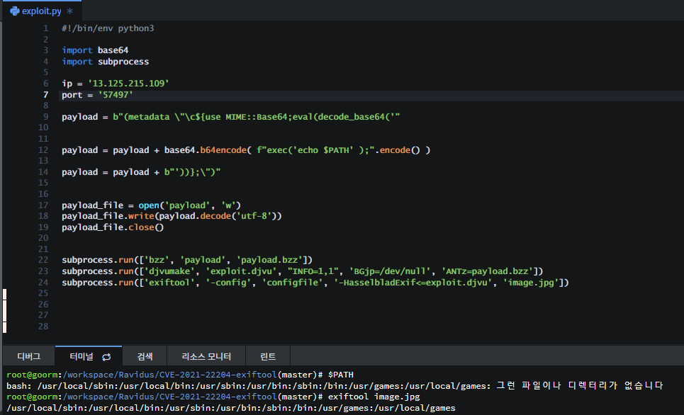 보시는 바와 같이 imgae.jpg를 exiftool로 실행시키자 이미지 파일에 대한 정보가 아닌 환경변수 PATH 값이 출력되는 것을 확인할 수 있습니다.