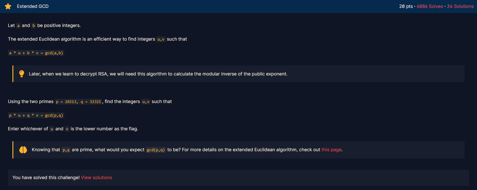 u, v = extended_gcd(26513, 32321)