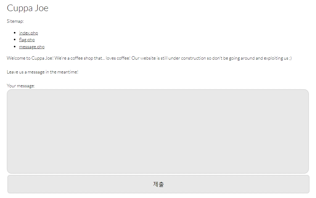 sitemap에 index, flag, message php가 있다고 알려주고 있습니다.